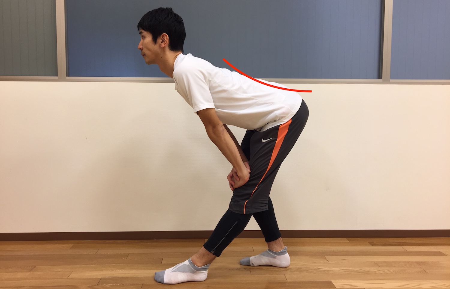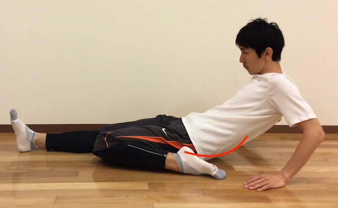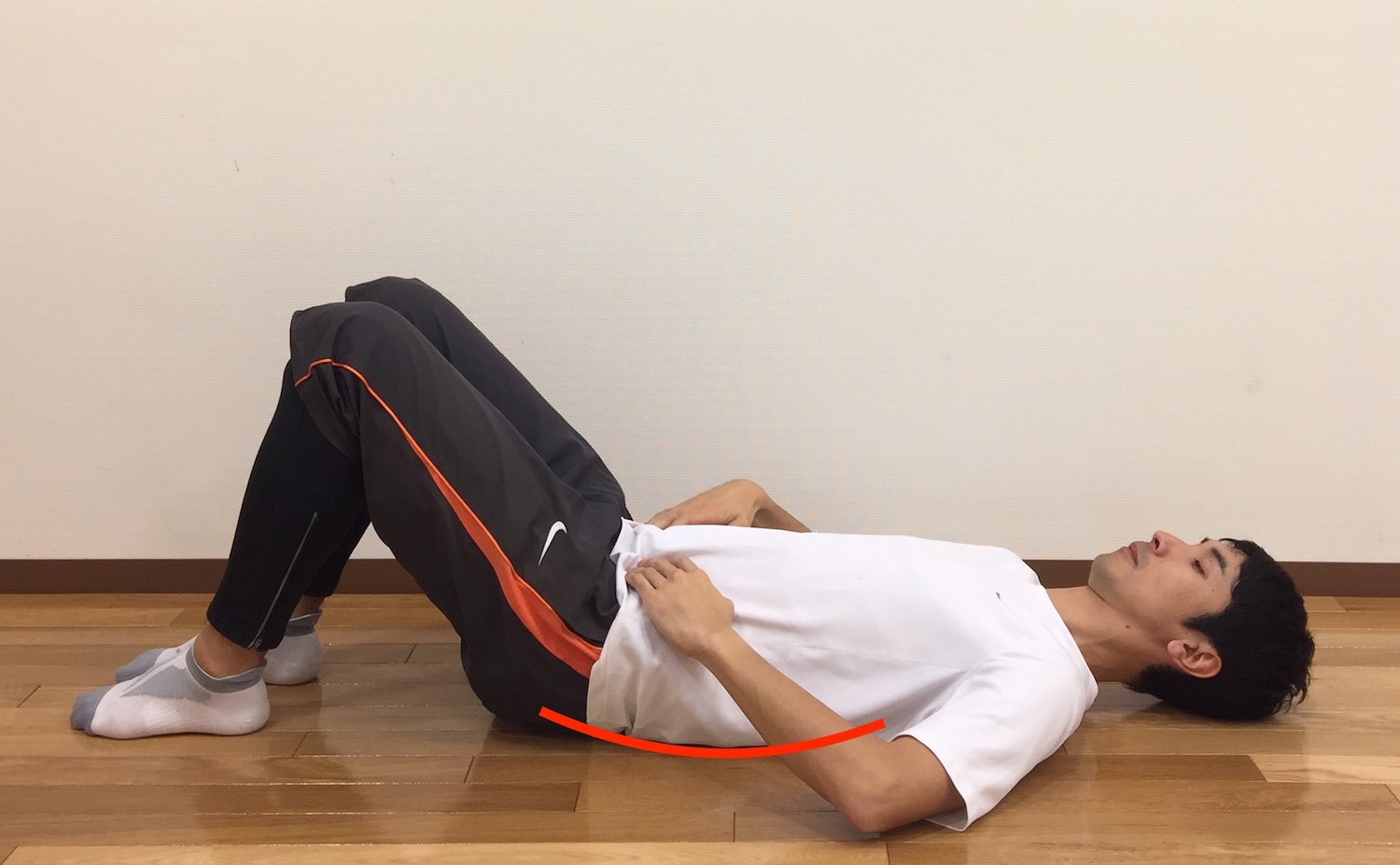 この時に腰を反らせて、床と腰の背骨の隙間を大きくあける動作が骨盤の前傾動作となります。